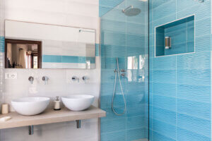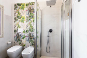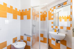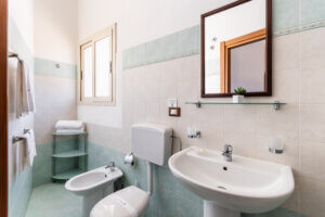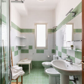 I bagni sono dotati di doccia e forniti di asciugacapelli e linea di cortesia ( asciugamani, saponette, e bagnoschiuma ).