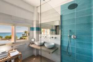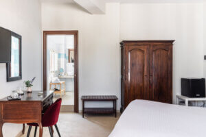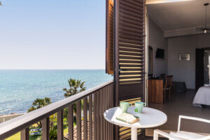 Le camere matrimoniali superior sono leggermente più ampie, rifinite con design moderno e hanno balcone con vista mare frontale e vista mare dalla doccia.