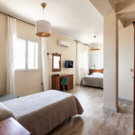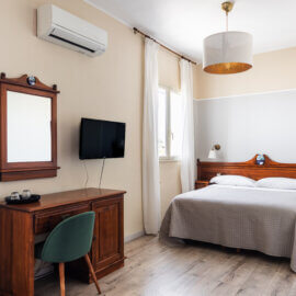 Dotazione delle camere: aria condizionata, TV, minibar, cassaforte con chiave o pin elettronico a disposizione del cliente e bagno privato.
